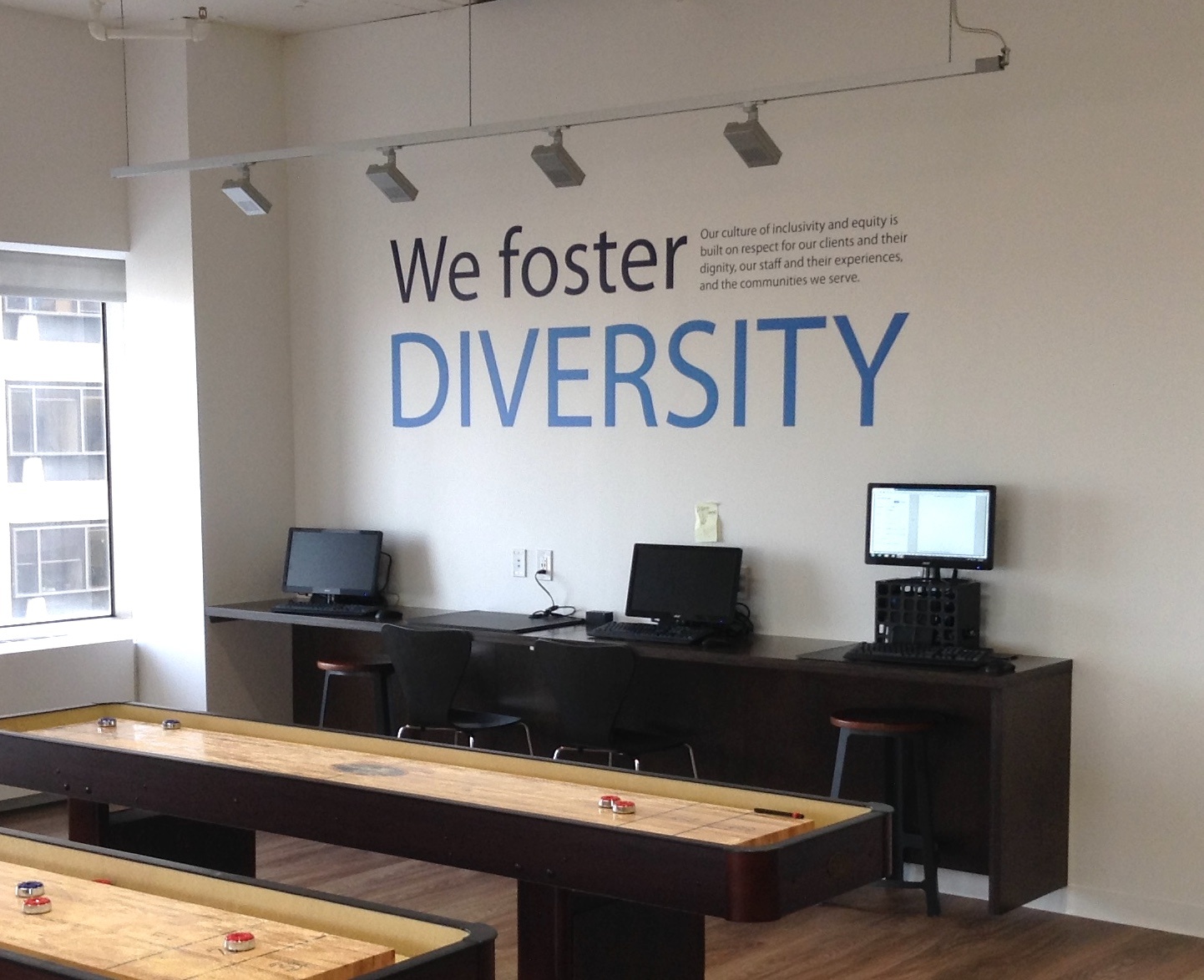 Lobby Signs, Graphics And Lettering : Our professional team of artists and designers creates signage, graphics, and vinyl lettering for your lobby to express your unique identity and make a positive first impression. From creation through design, material selection, and ultimately the finished product, we deliver on time, on target, and on budget.